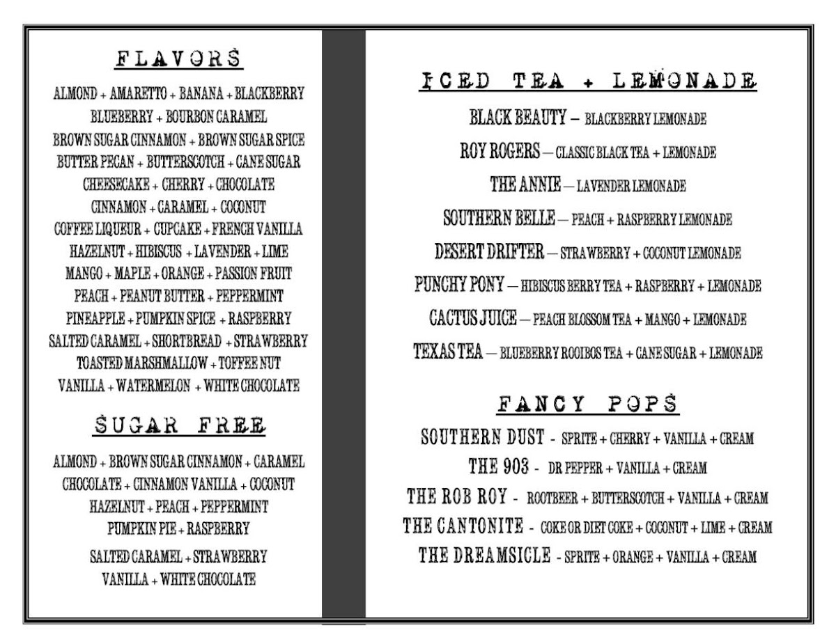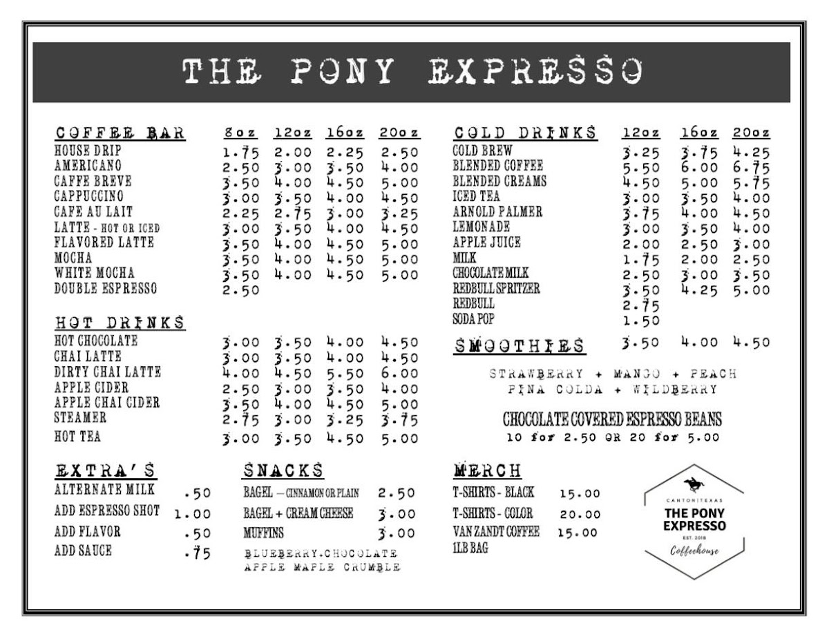 The Pony Expresso Menu